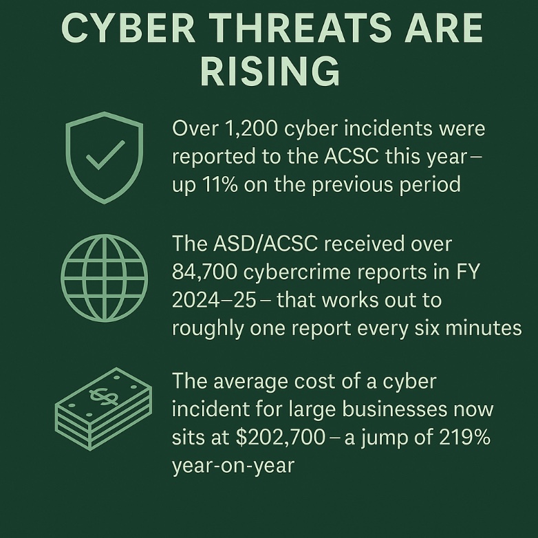 The 2024-25 ACSC report confirms what we at The Virtual IT Department see day-to-day: cyber-threats are not static and they are increasing in frequency, scale and potential impact.